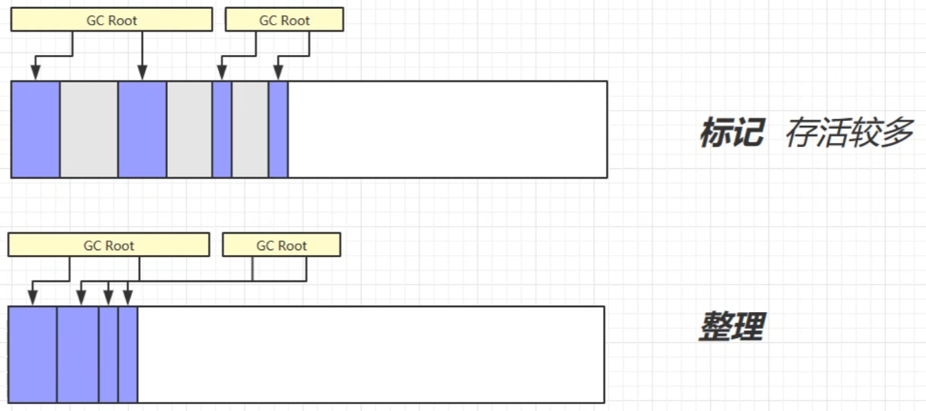扫描堆中的对象,看是否能够沿着 GC Root 对象为起点的引用链找到该对象,找不到,表示可以回收。