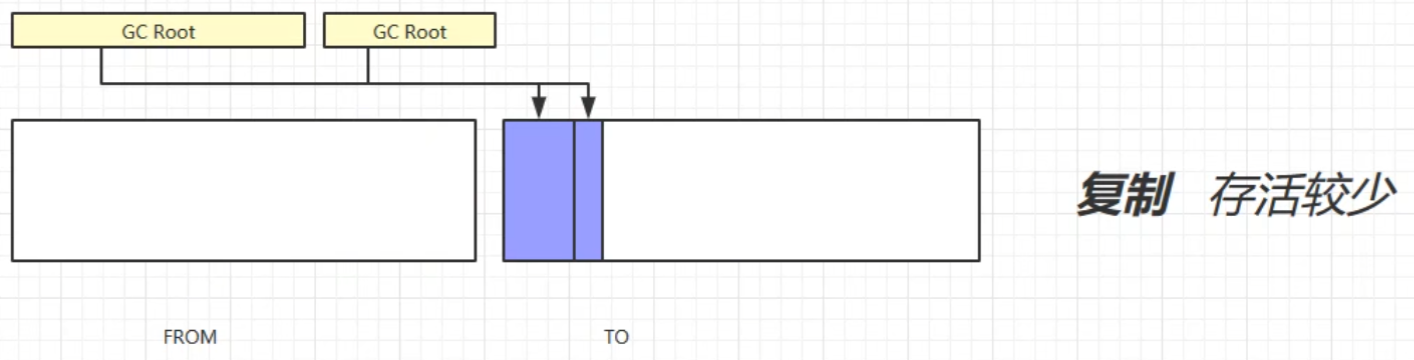 Minor GC 会沿着 GC Root 扫描伊甸园区,进行一次垃圾标记操作。然后采用复制算法,将存活的对象复制到 幸存区To 中,并将幸存对象的寿命+1