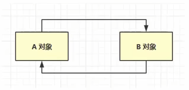 如下图,即使两个对象没有被使用,但两个对象的引用计数始终为1。