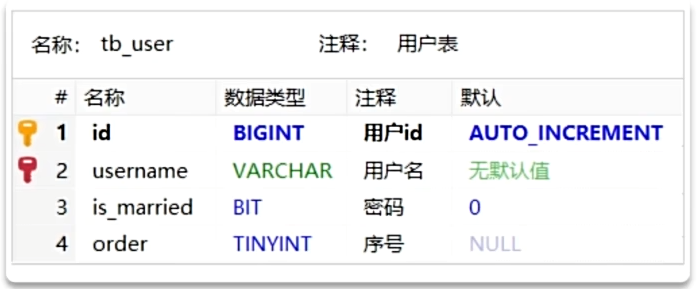 例如:① Boolean isMarried 由于是布尔类型,会默认映射到数据库的married字 ② Integer order 与数据库的order排序关键字冲突